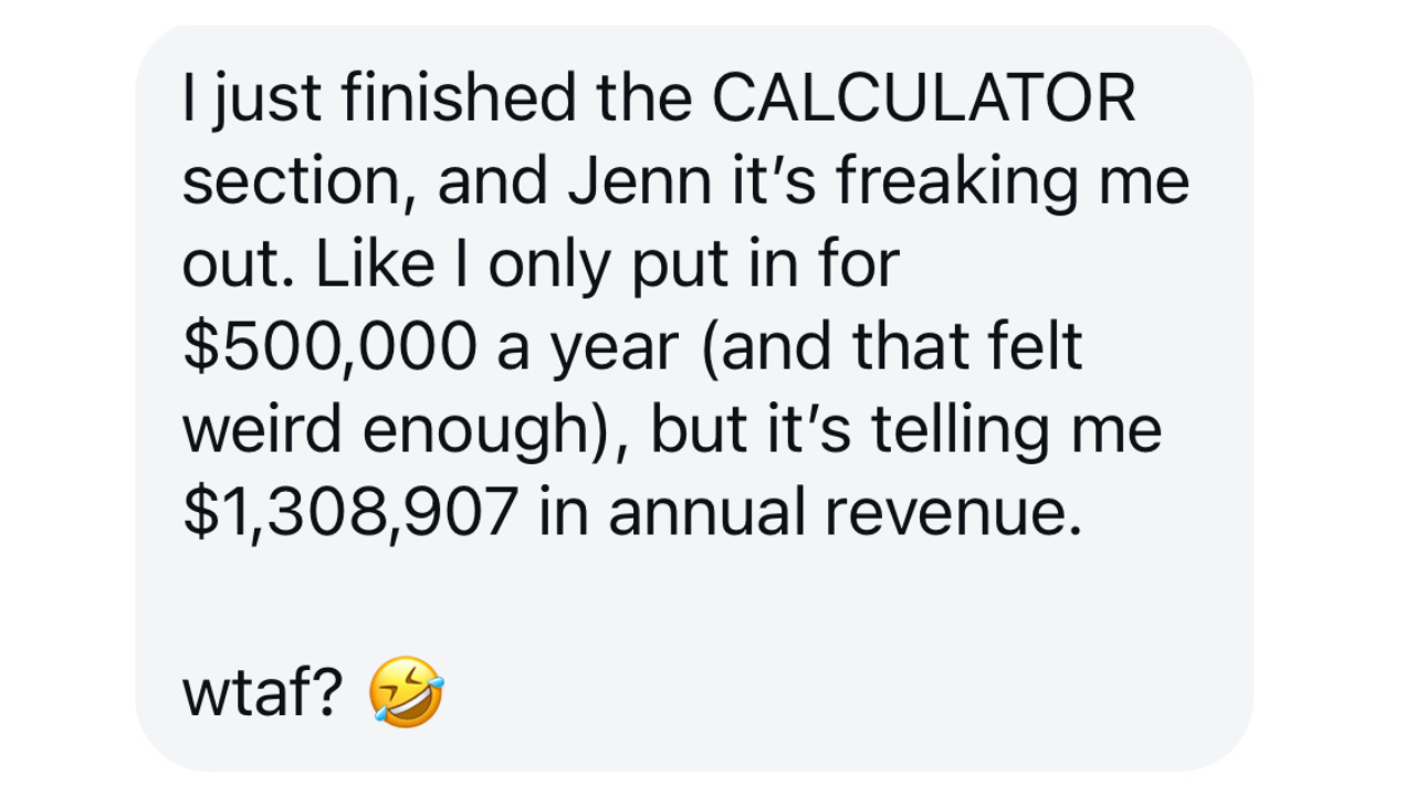 Enter your real data and see, instantly, how different offers change your income; whether that’s $50K, $250K, or $1M. Most people say, “Oh… that makes so much sense.” Some cry. All feel relief.